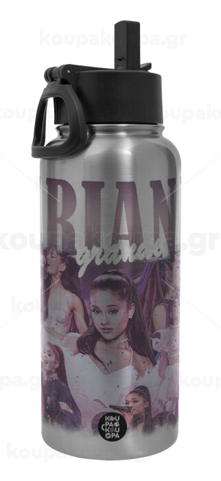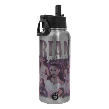 Ariana Grande, Metal mug thermo Silver with Straw and Spout Lid (Stainless steel), double wall, 950ml