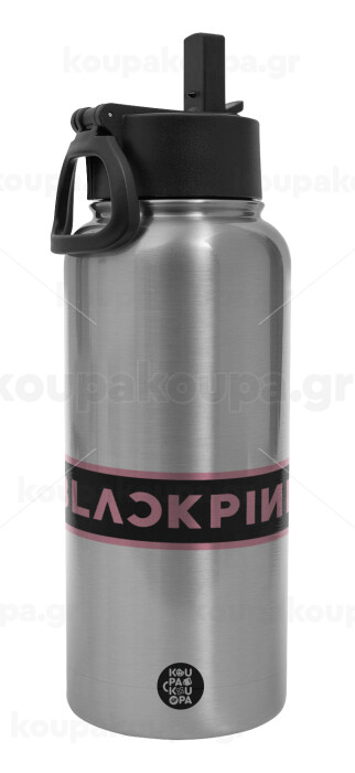 BLACKPINK, Metal mug thermo Silver with Straw and Spout Lid (Stainless steel), double wall, 950ml
