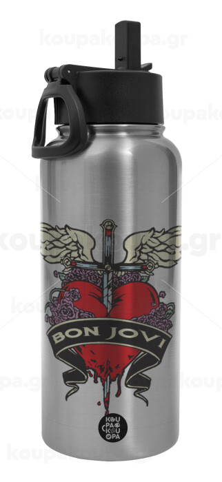 Bon Jovi, Metal mug thermo Silver with Straw and Spout Lid (Stainless steel), double wall, 950ml