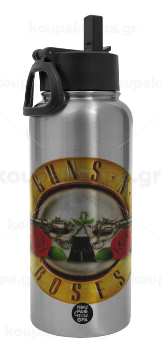 Guns N' Roses, Metal mug thermo Silver with Straw and Spout Lid (Stainless steel), double wall, 950ml