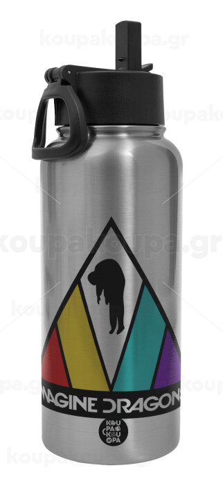 Imagine Dragons, Metal mug thermo Silver with Straw and Spout Lid (Stainless steel), double wall, 950ml