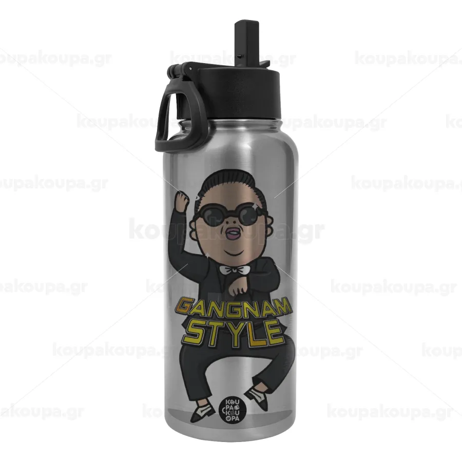 PSY - GANGNAM STYLE, Metal mug thermo Silver with Straw and Spout Lid (Stainless steel), double wall, 950ml
