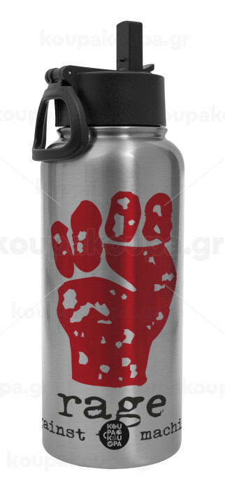 Rage against the machine, Metal mug thermo Silver with Straw and Spout Lid (Stainless steel), double wall, 950ml