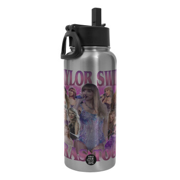 Taylor Swift, Metal mug thermo Silver with Straw and Spout Lid (Stainless steel), double wall, 950ml