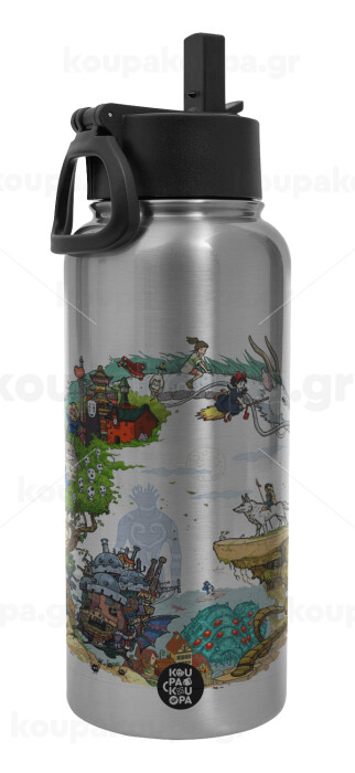 Στούδιο Γκίβλι, Metal mug thermo Silver with Straw and Spout Lid (Stainless steel), double wall, 950ml