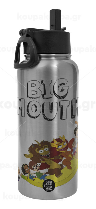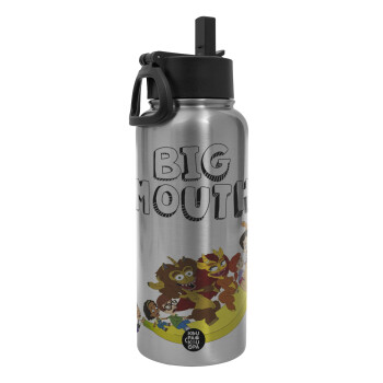 Big mouth, Metal mug thermo Silver with Straw and Spout Lid (Stainless steel), double wall, 950ml