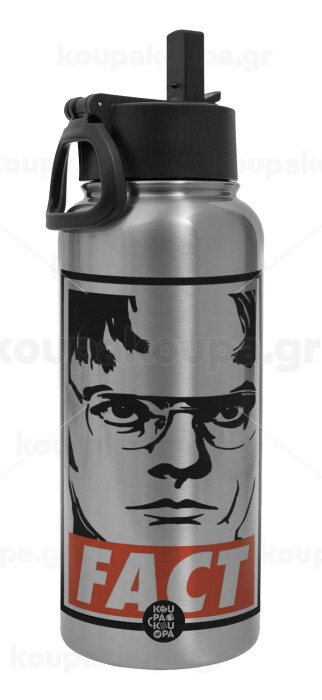 Dunder Mifflin FACT, Metal mug thermo Silver with Straw and Spout Lid (Stainless steel), double wall, 950ml