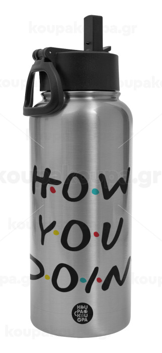 Friends How You Doin'?, Metal mug thermo Silver with Straw and Spout Lid (Stainless steel), double wall, 950ml