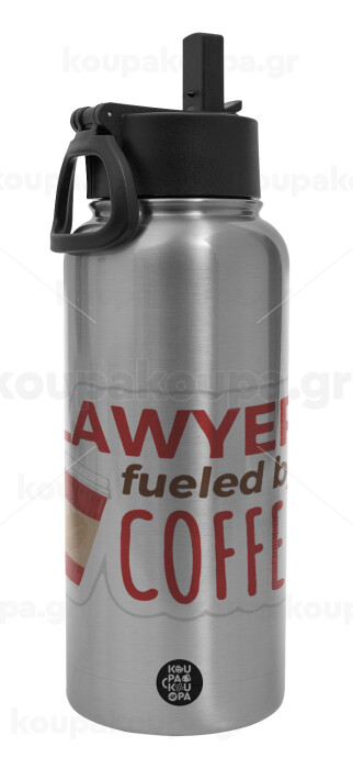 Lawyer fueled by coffee, Metal mug thermo Silver with Straw and Spout Lid (Stainless steel), double wall, 950ml