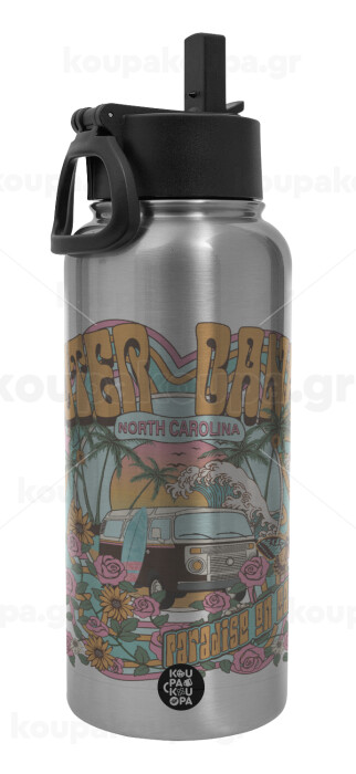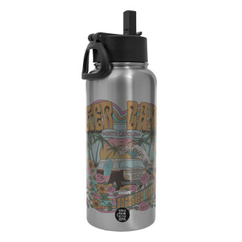 Outerbanks paradise on earth, Metal mug thermo Silver with Straw and Spout Lid (Stainless steel), double wall, 950ml