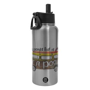 Outerbanks Pogue Life, Metal mug thermo Silver with Straw and Spout Lid (Stainless steel), double wall, 950ml