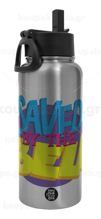 Saved by the Bell, Metal mug thermo Silver with Straw and Spout Lid (Stainless steel), double wall, 950ml