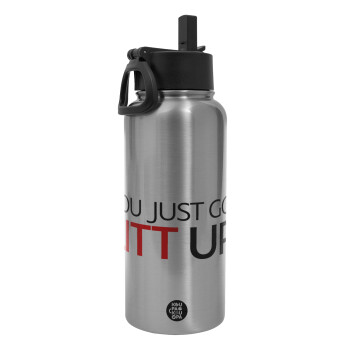 Suits You Just Got Litt Up! , Metal mug thermo Silver with Straw and Spout Lid (Stainless steel), double wall, 950ml