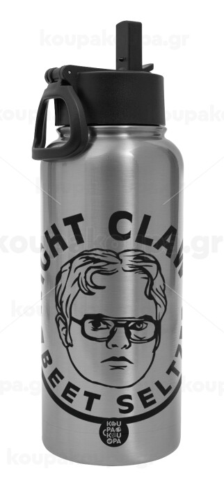 The office Dwight Claw (beet seltzer), Metal mug thermo Silver with Straw and Spout Lid (Stainless steel), double wall, 950ml