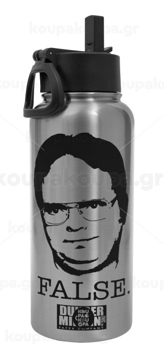 The office Dwight, Metal mug thermo Silver with Straw and Spout Lid (Stainless steel), double wall, 950ml