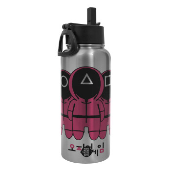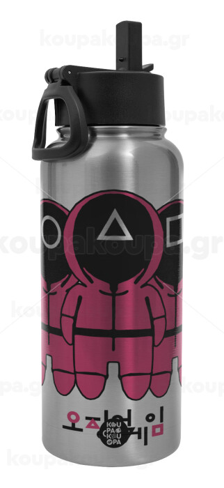 The squid game, Metal mug thermo Silver with Straw and Spout Lid (Stainless steel), double wall, 950ml