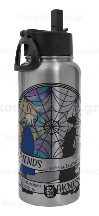 Wednesday window, Metal mug thermo Silver with Straw and Spout Lid (Stainless steel), double wall, 950ml