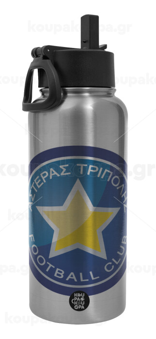 Asteras Tripolis, Metal mug thermo Silver with Straw and Spout Lid (Stainless steel), double wall, 950ml