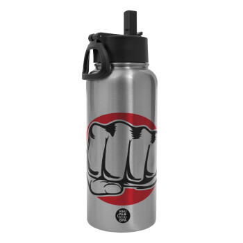 Punch, Metal mug thermo Silver with Straw and Spout Lid (Stainless steel), double wall, 950ml