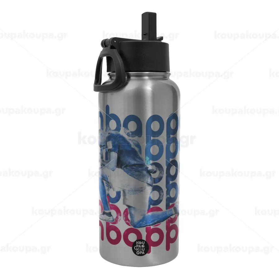 Kylian Mbappé, Metal mug thermo Silver with Straw and Spout Lid (Stainless steel), double wall, 950ml