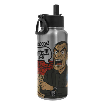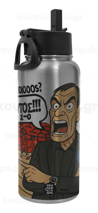 Μπαρτζό, Ποιος? Αυτός!!! 1-0, Metal mug thermo Silver with Straw and Spout Lid (Stainless steel), double wall, 950ml