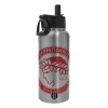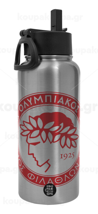Ολυμπιακός, Metal mug thermo Silver with Straw and Spout Lid (Stainless steel), double wall, 950ml
