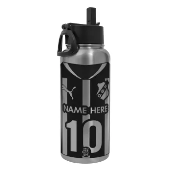 ΟΦΗ εμφάνιση, Metal mug thermo Silver with Straw and Spout Lid (Stainless steel), double wall, 950ml