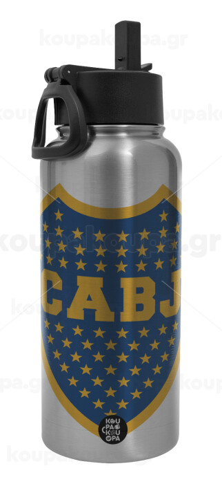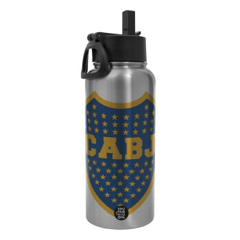 Club Atlético Boca Juniors, Metal mug thermo Silver with Straw and Spout Lid (Stainless steel), double wall, 950ml