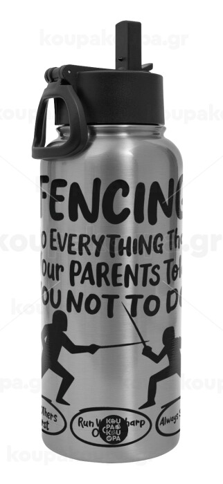 Fencing, do everything that your parents told you not to do., Metal mug thermo Silver with Straw and Spout Lid (Stainless steel), double wall, 950ml