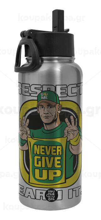 John Cena, Metal mug thermo Silver with Straw and Spout Lid (Stainless steel), double wall, 950ml