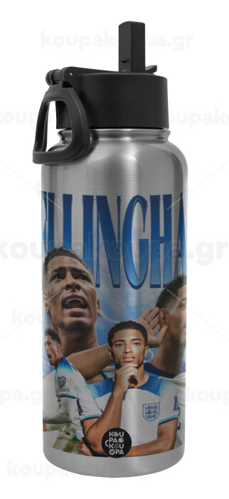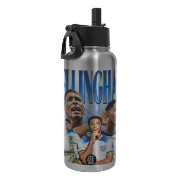 Jude Bellingham, Metal mug thermo Silver with Straw and Spout Lid (Stainless steel), double wall, 950ml