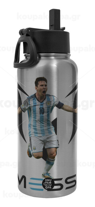 Lionel Messi, Metal mug thermo Silver with Straw and Spout Lid (Stainless steel), double wall, 950ml