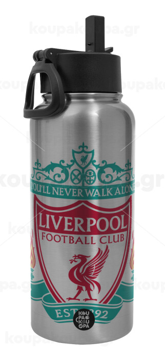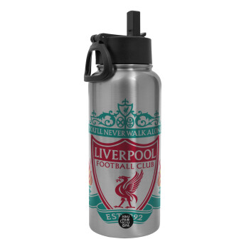 Liverpool, Metal mug thermo Silver with Straw and Spout Lid (Stainless steel), double wall, 950ml