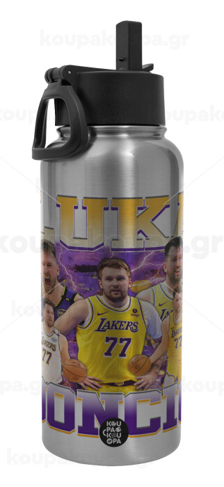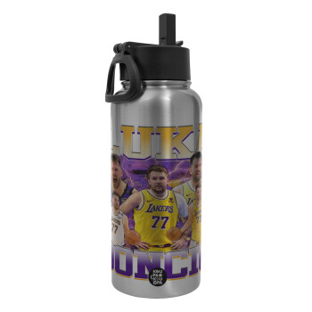 Luka Doncic Basketball , Metal mug thermo Silver with Straw and Spout Lid (Stainless steel), double wall, 950ml