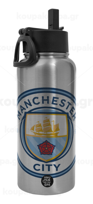 Manchester City FC , Metal mug thermo Silver with Straw and Spout Lid (Stainless steel), double wall, 950ml
