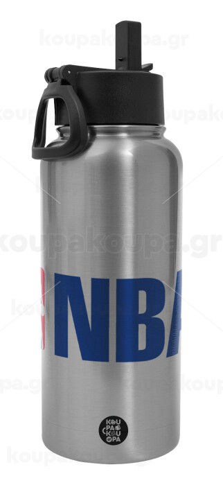 NBA, Metal mug thermo Silver with Straw and Spout Lid (Stainless steel), double wall, 950ml
