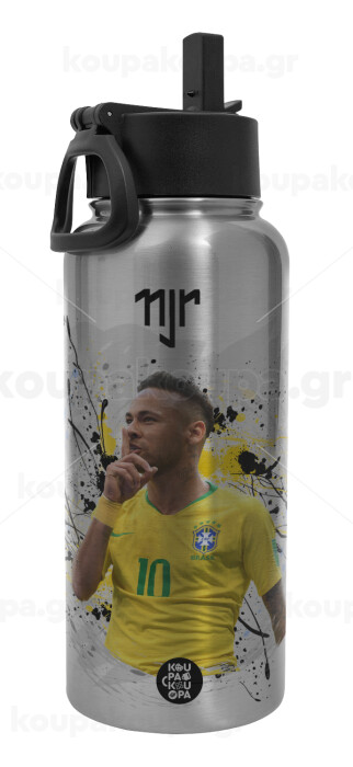 Neymar JR, Metal mug thermo Silver with Straw and Spout Lid (Stainless steel), double wall, 950ml