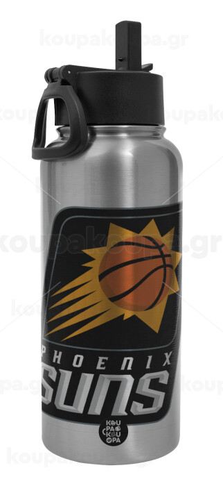 Phoenix Suns, Metal mug thermo Silver with Straw and Spout Lid (Stainless steel), double wall, 950ml