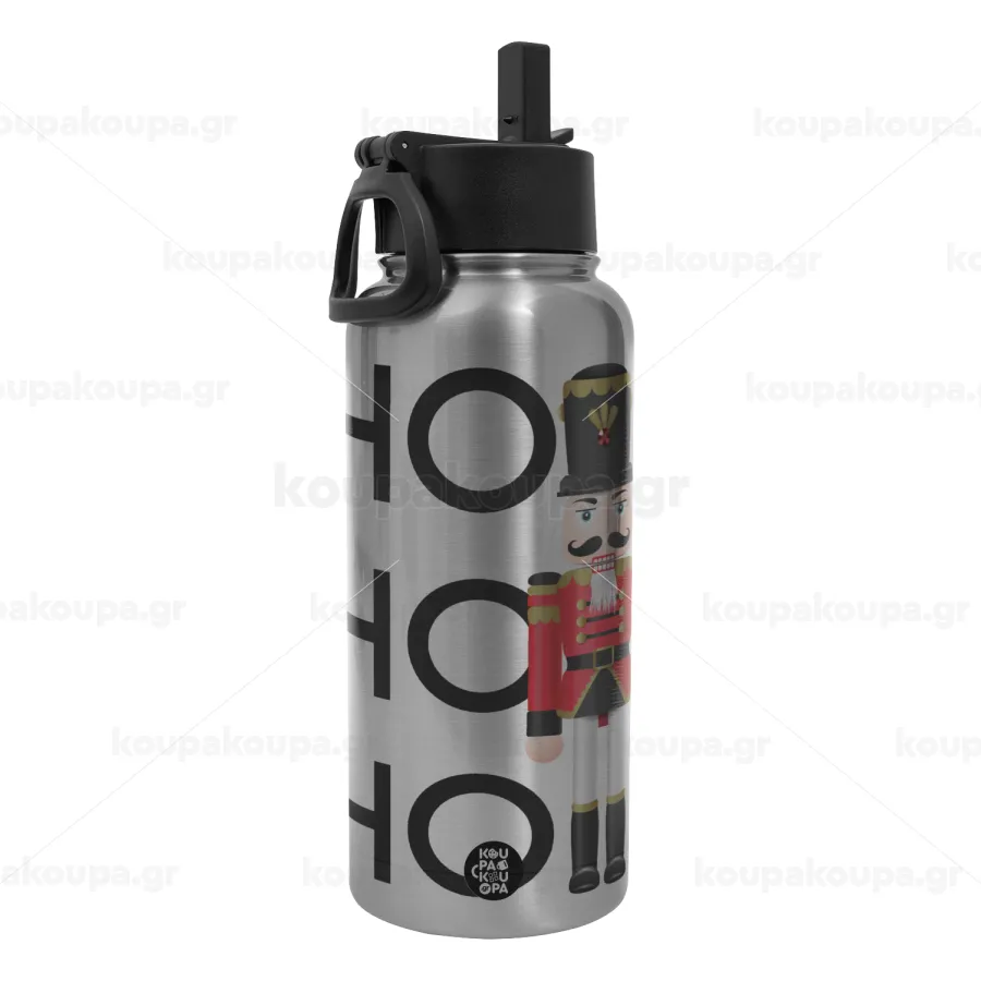 Nutcracker, Metal mug thermo Silver with Straw and Spout Lid (Stainless steel), double wall, 950ml
