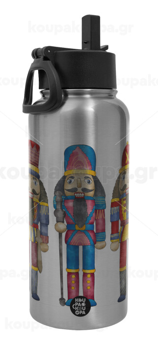 Christmas Nutcrackers, Metal mug thermo Silver with Straw and Spout Lid (Stainless steel), double wall, 950ml