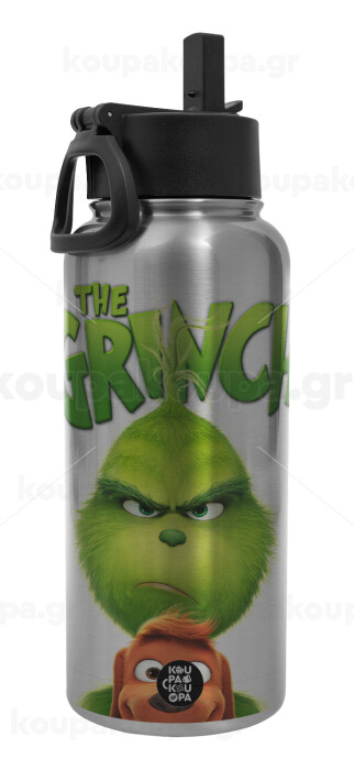 mr grinch, Metal mug thermo Silver with Straw and Spout Lid (Stainless steel), double wall, 950ml