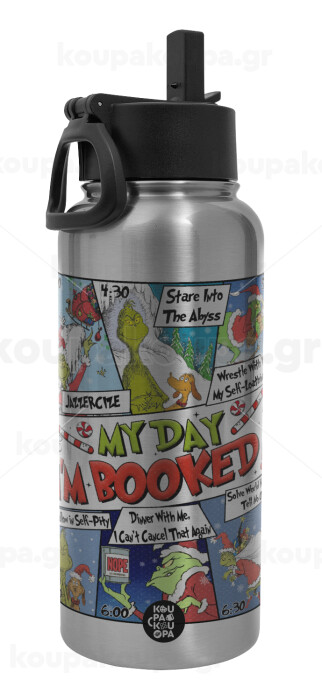 My Day Grinch, Metal mug thermo Silver with Straw and Spout Lid (Stainless steel), double wall, 950ml
