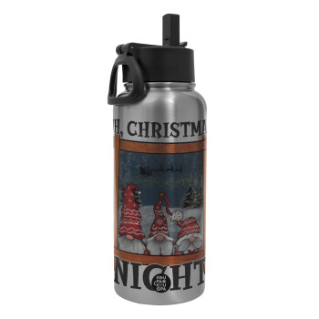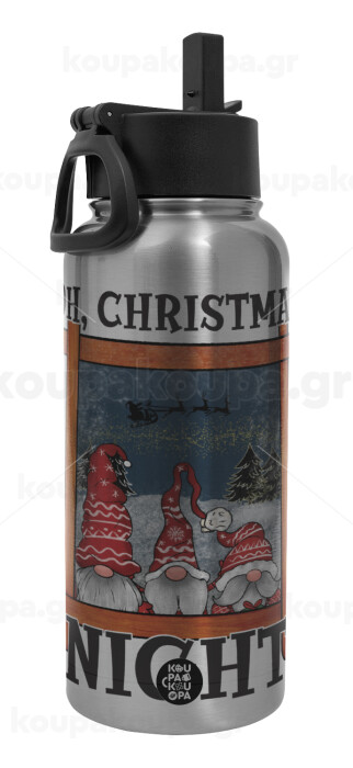 Oh Christmas Night, Metal mug thermo Silver with Straw and Spout Lid (Stainless steel), double wall, 950ml