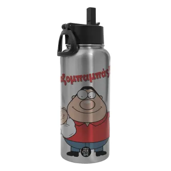Χαζομπαμπάς, Metal mug thermo Silver with Straw and Spout Lid (Stainless steel), double wall, 950ml
