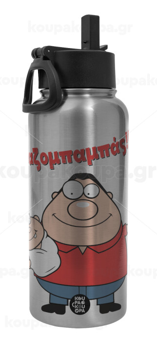 Χαζομπαμπάς, Metal mug thermo Silver with Straw and Spout Lid (Stainless steel), double wall, 950ml