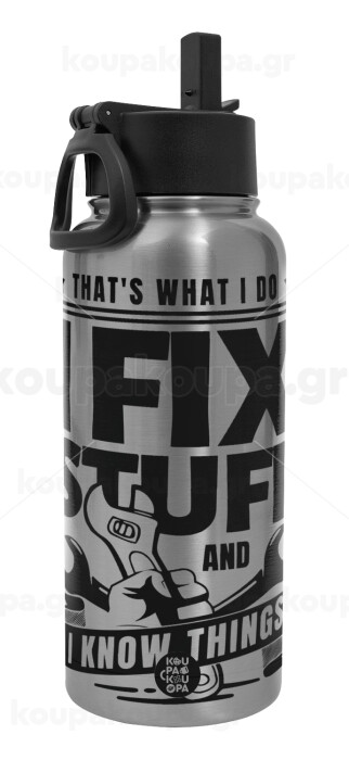 I fix stuff, Metal mug thermo Silver with Straw and Spout Lid (Stainless steel), double wall, 950ml