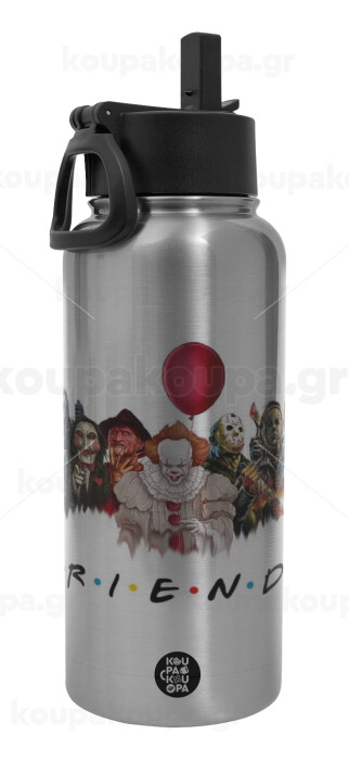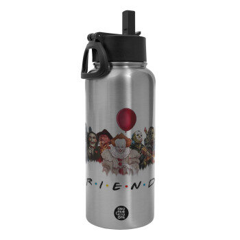 Halloween Friends, Metal mug thermo Silver with Straw and Spout Lid (Stainless steel), double wall, 950ml