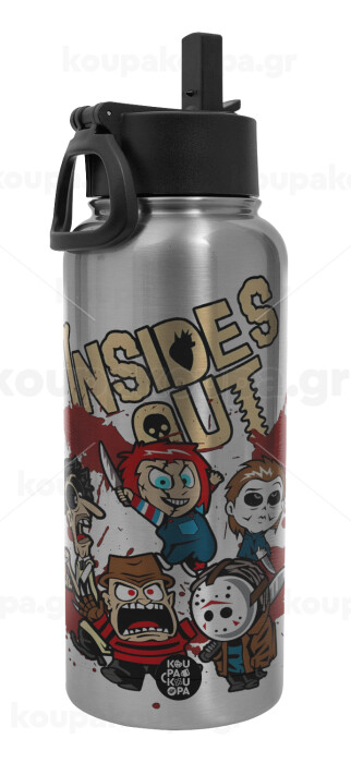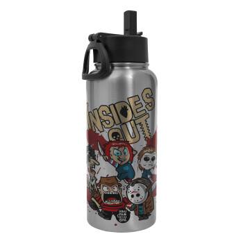 Halloween Inside out, Metal mug thermo Silver with Straw and Spout Lid (Stainless steel), double wall, 950ml