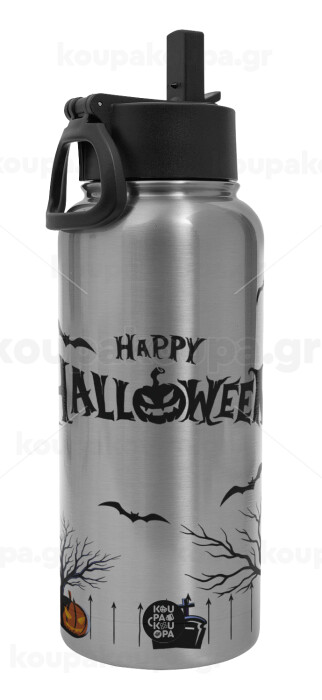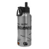 Happy Halloween cemetery, Metal mug thermo Silver with Straw and Spout Lid (Stainless steel), double wall, 950ml