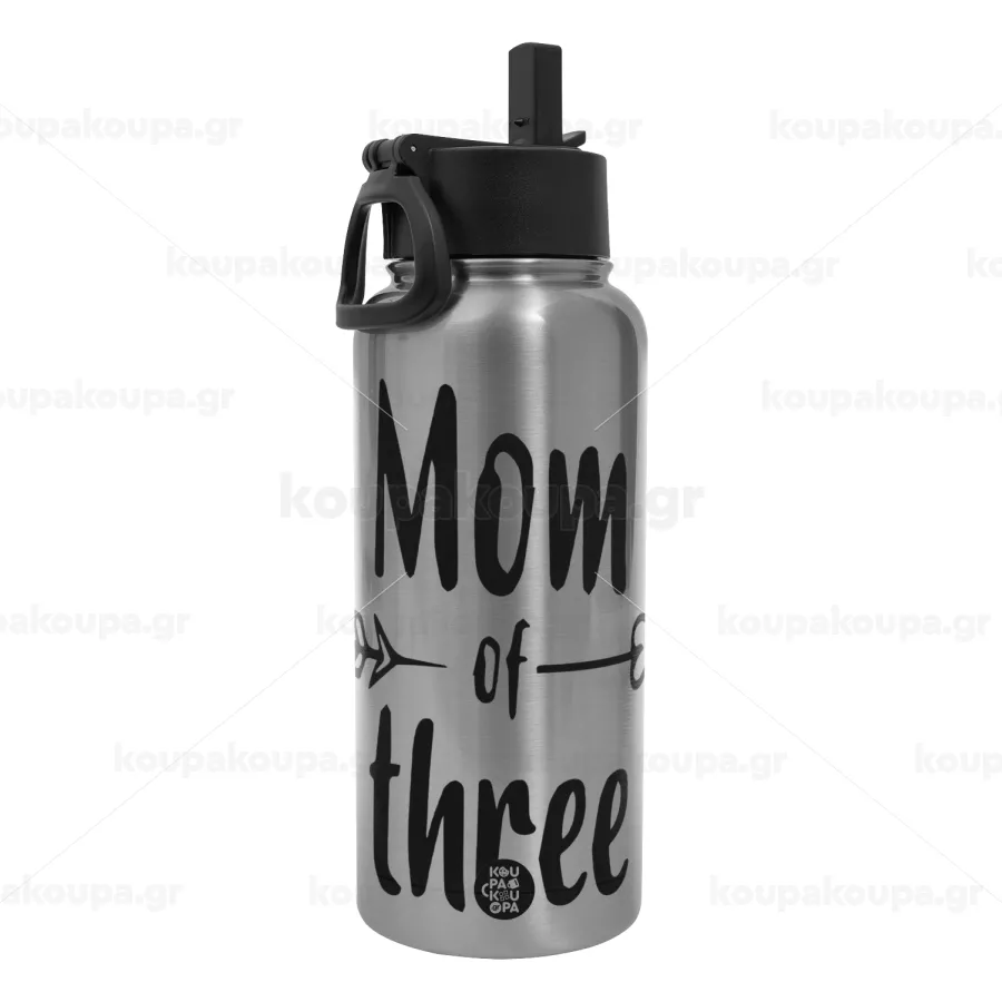Mom of three, Metal mug thermo Silver with Straw and Spout Lid (Stainless steel), double wall, 950ml